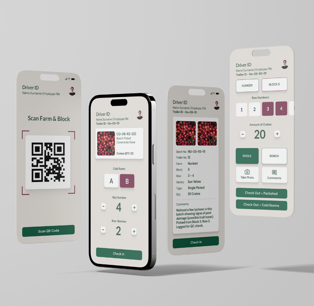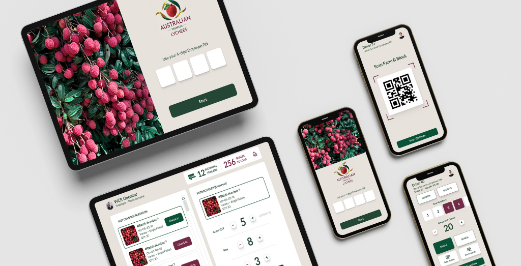 Australian Premium Lychees is an internal operations app developed for Sweet Sensations in Australia. The platform was designed to support farm and packhouse workers by enabling fast, accurate data capture throughout the lychee production process — from picking in the orchards to final packing and consignment.