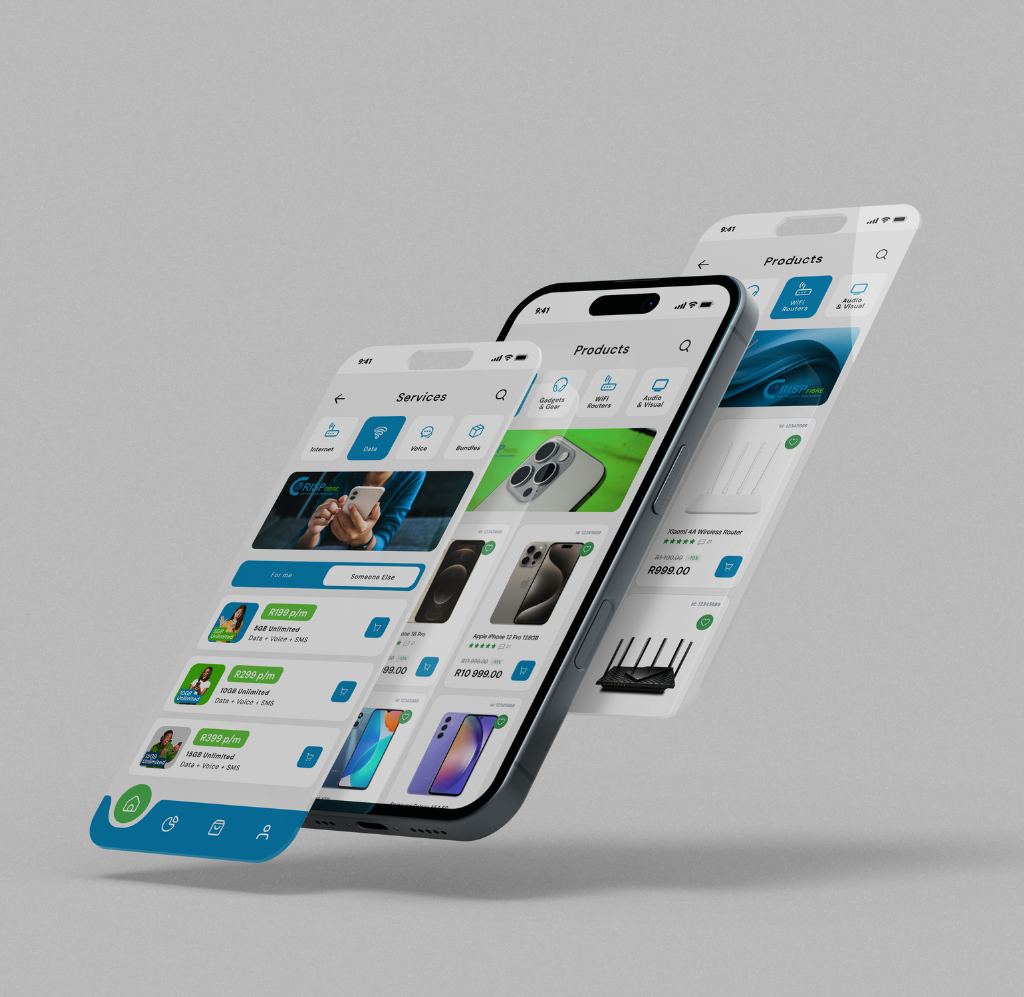 Social Revolution led the UX/UI design of the Crisp Fibre app, focusing on clarity, usability, and accessibility. Working closely with Future AXS, we designed a clean and intuitive experience that makes complex ISP services feel simple, modern, and user-friendly.